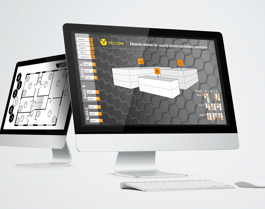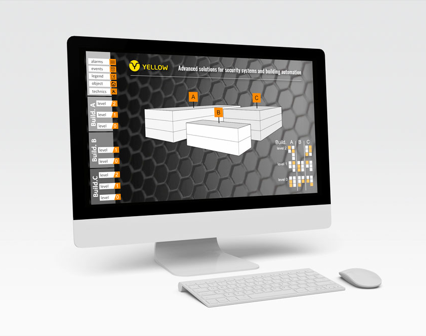 Visualization can be provided in a form of the classic object technology, vector technology, as well as a WEB browser. For the simplest and most basic form of presentation of your integrated devices put your icons on your pre-defined views (graphic panels) with a simple click. All your icons represent the actual status of the corresponding devices. YELLOW also offers a feature called functional block: for example, you can build whole tables with events, a dynamic list of current events, reception modules, etc. You can also enrich your visualization with special effects, such as semi-transparency and 3D effects.