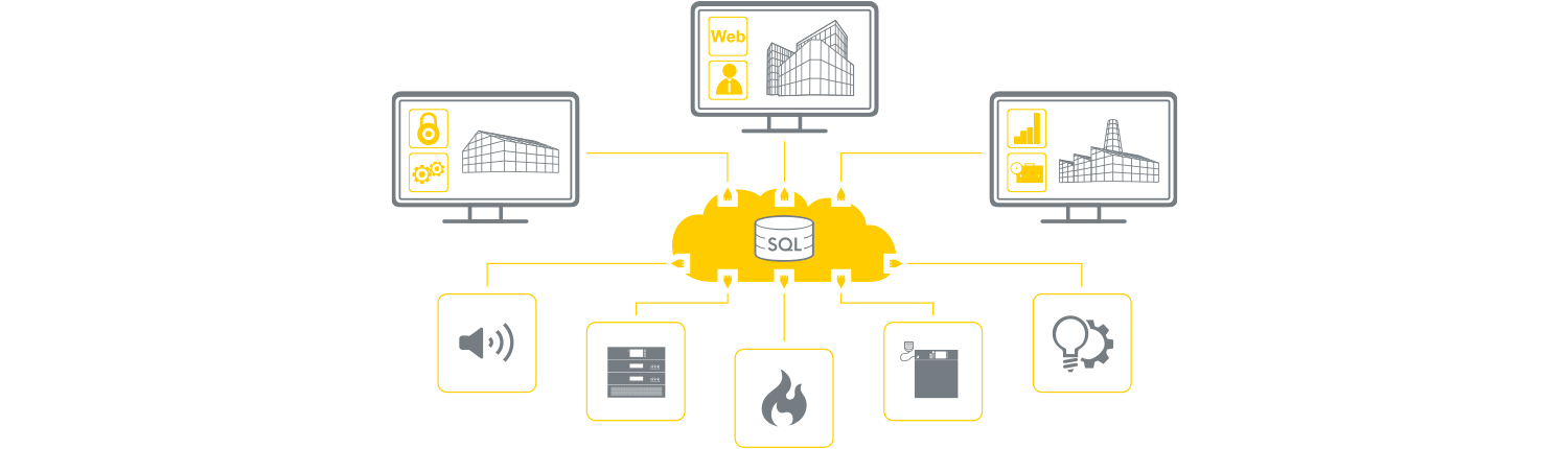 Elastyczne środowisko pracy jakie oferuje oprogramowanie YELLOW, czyni z niego idealny wybór dla szerokiego zakresu zastosowań. Sprawdza się w obiektach fabrycznych, handlowych,militarnych, biurowcach, szpitalach gdzie sprawne zarządzanie systemami bezpieczeństwa jest wymagane. YELLOW nie wymaga żadnych specjalnych umiejętności od operatora, to bardzo przyjazne dla użytkownika oprogramowanie, które w jasny i czytelny sposób pokieruje operatora w przypadku zagrożenia.