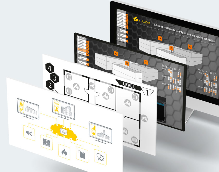 YELLOW jest systemem informatycznym do wizualizacji, integracji oraz zarządzania dźwiękowymi systemami ostrzegawczymi MULTIVES oraz miniVES.